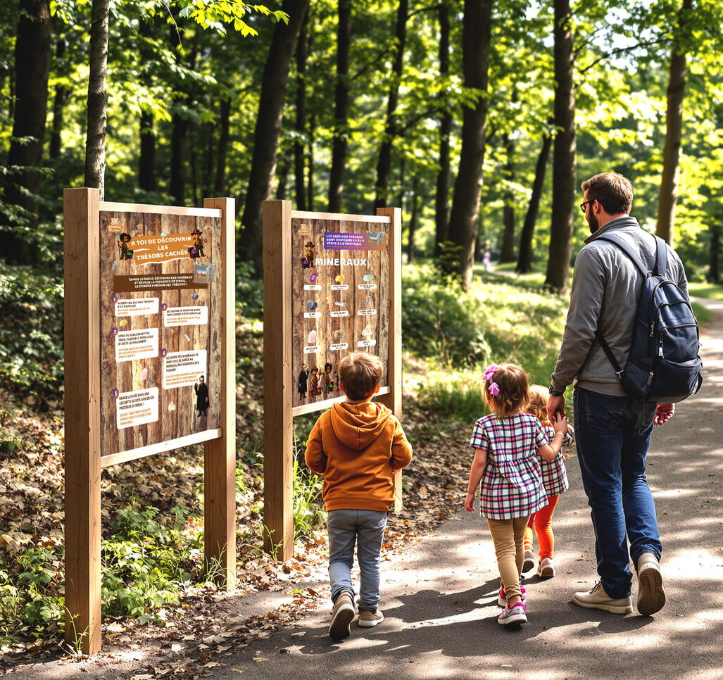 - Un décor immersif → Installation et livraison de rivière, tamis, sacs aux trésors et panneaux merchandising au camping.